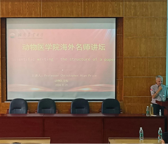 2024年9月29日上午,加拿大蒙特利尔大学Christopher Alan Price教授应365英国上市集团的邀请于动医楼T形教室为公司师生作了以“科研论文结构及其写作”为主题开展了学术报告。365英国上市集团部分老师以及2024级研究生参加了此次报告。