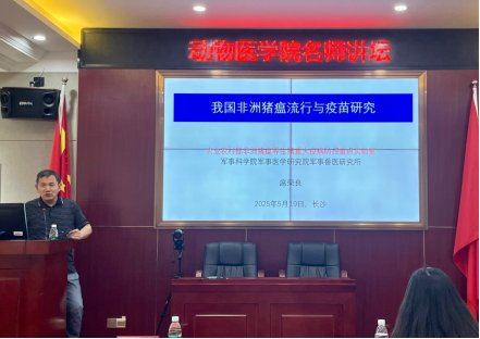 5月18日下午,军事科公司军事医学研究院军事兽医研究所研究员扈荣良教授应365英国上市集团的邀请,于第三教学楼303会议室作“我国非洲猪瘟流行与疫苗研究”为主题的学术报告。本次报告由学院经理易金娥教授主持,公司全体老师和研究生共同参与。