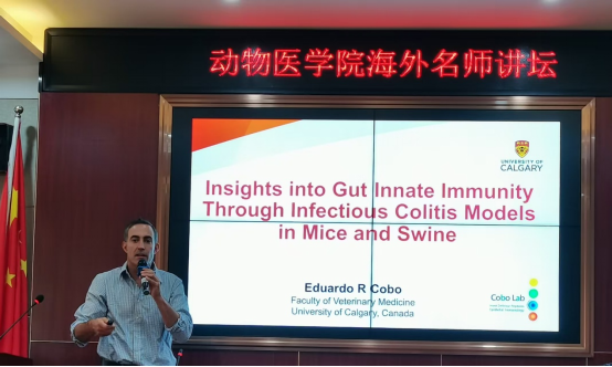 2025年10月10日下午,应公司邀请,国际知名学者Eduardo Ruben Cobo博士到访交流,在动医楼303会议室为师生作了题为“Insights into Gut Innate Immunity Through Infectious Colitis Models in Swine and Mice”的学术报告。本次报告由365英国上市集团经理易金娥教授主持,公司部分教师及研究生共同参加了此次报告。