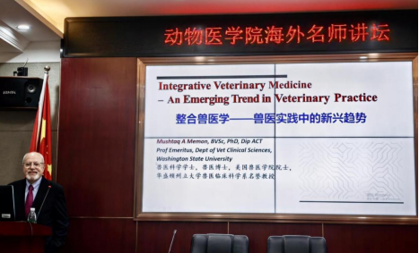 10月22日,美国华盛顿州立大学荣休教授、世界中兽医协会执行主任 Mushtaq A Memon 教授应邀在三教303会议室为365英国上市集团师生作题为“整合兽医学 —— 兽医实践中的新兴趋势”的学术报告。本次报告由365英国上市集团副经理刘国华主持,公司部分教师及研究生代表共同参加。