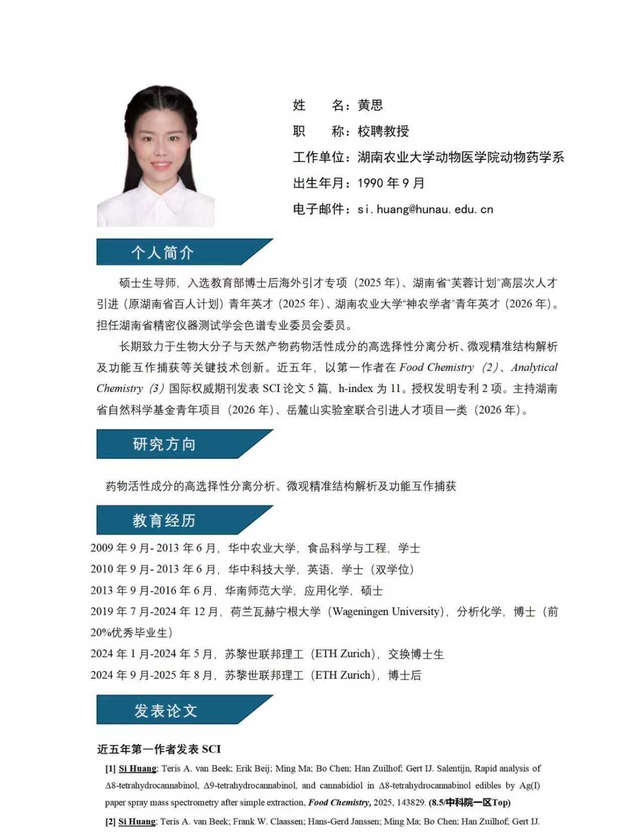 黄思教授简介