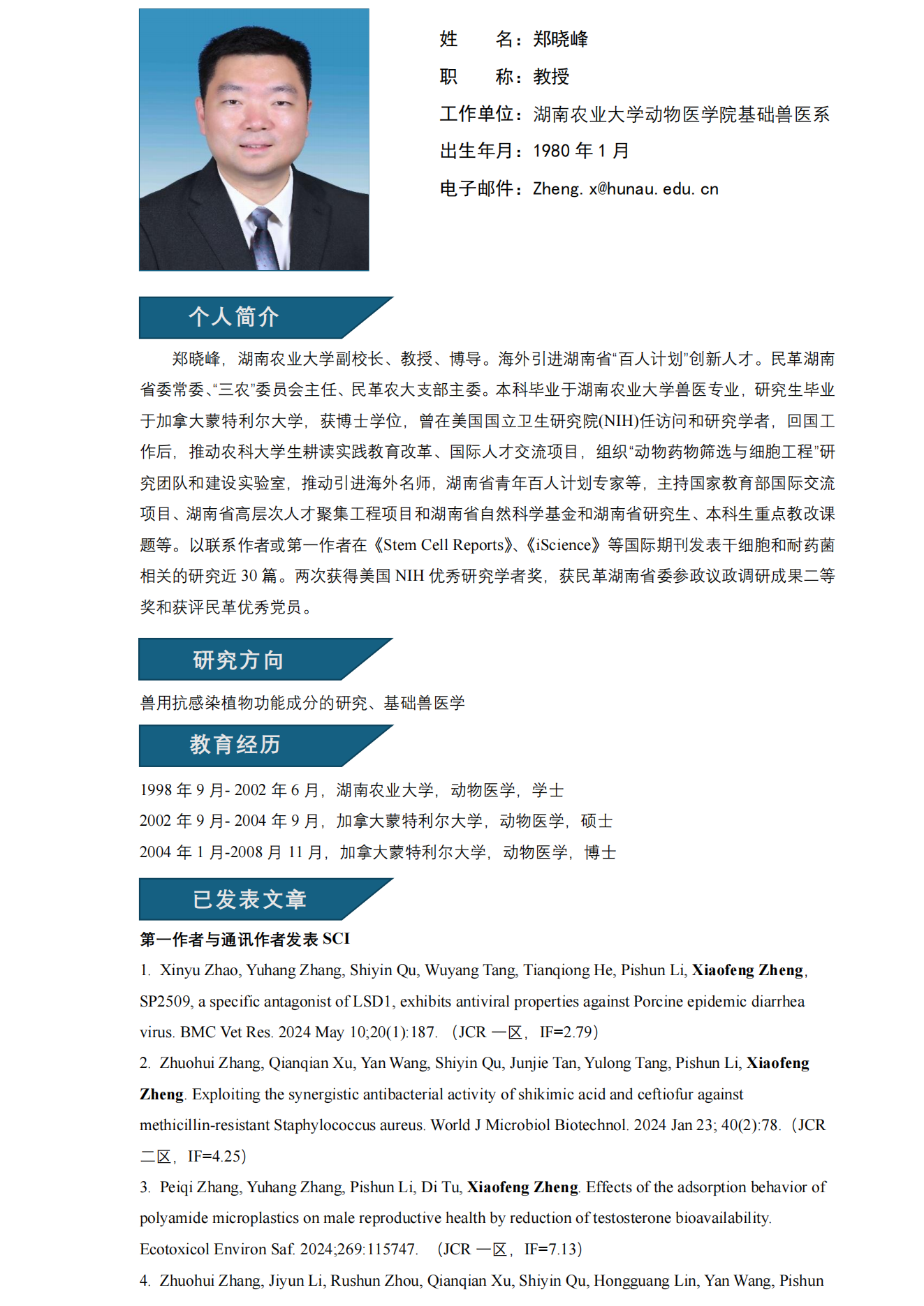 郑晓峰教授简介