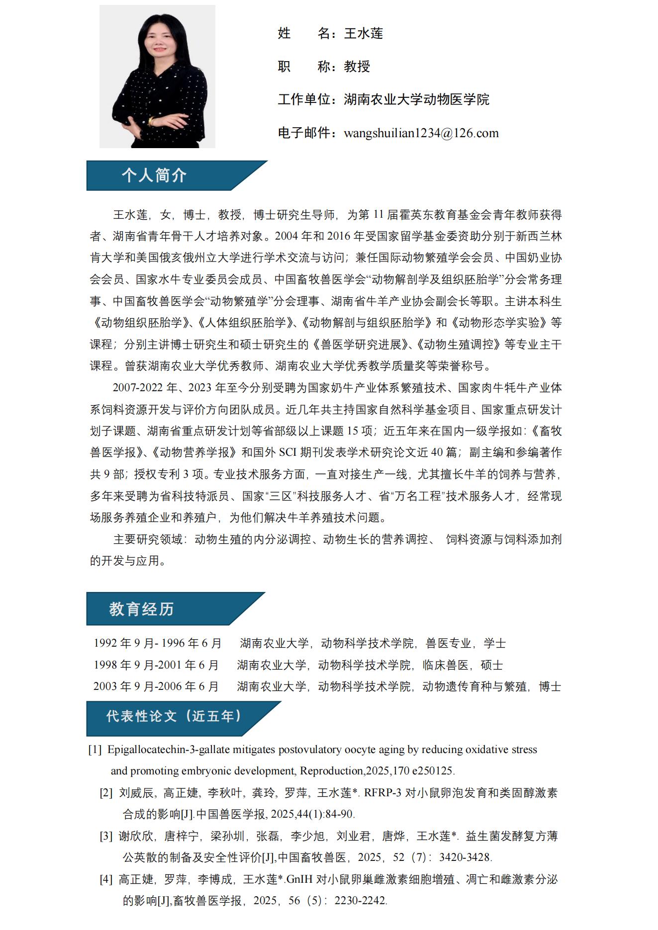 王水莲教授简介