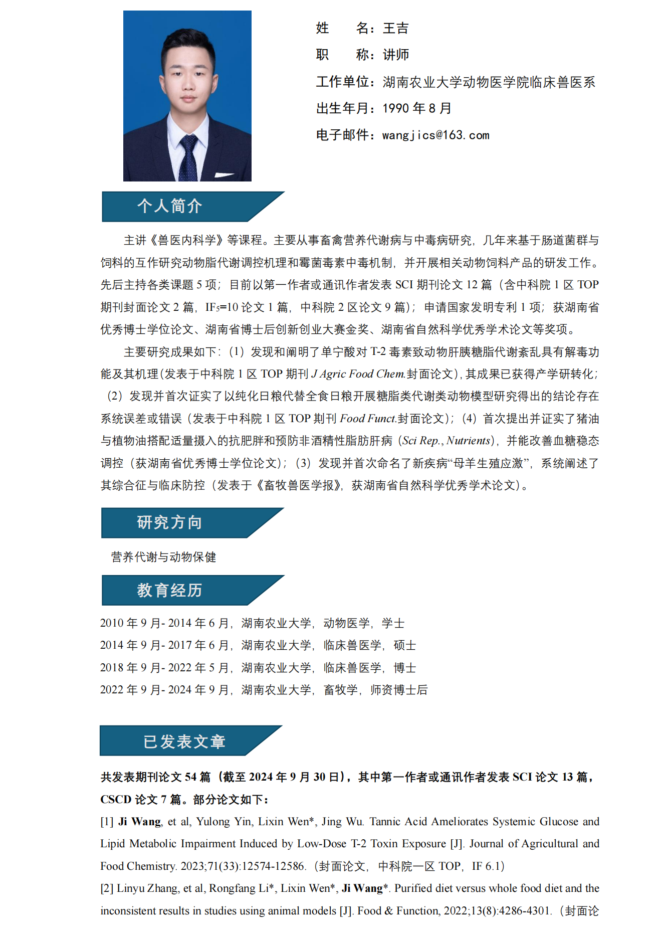 王吉老师简介
