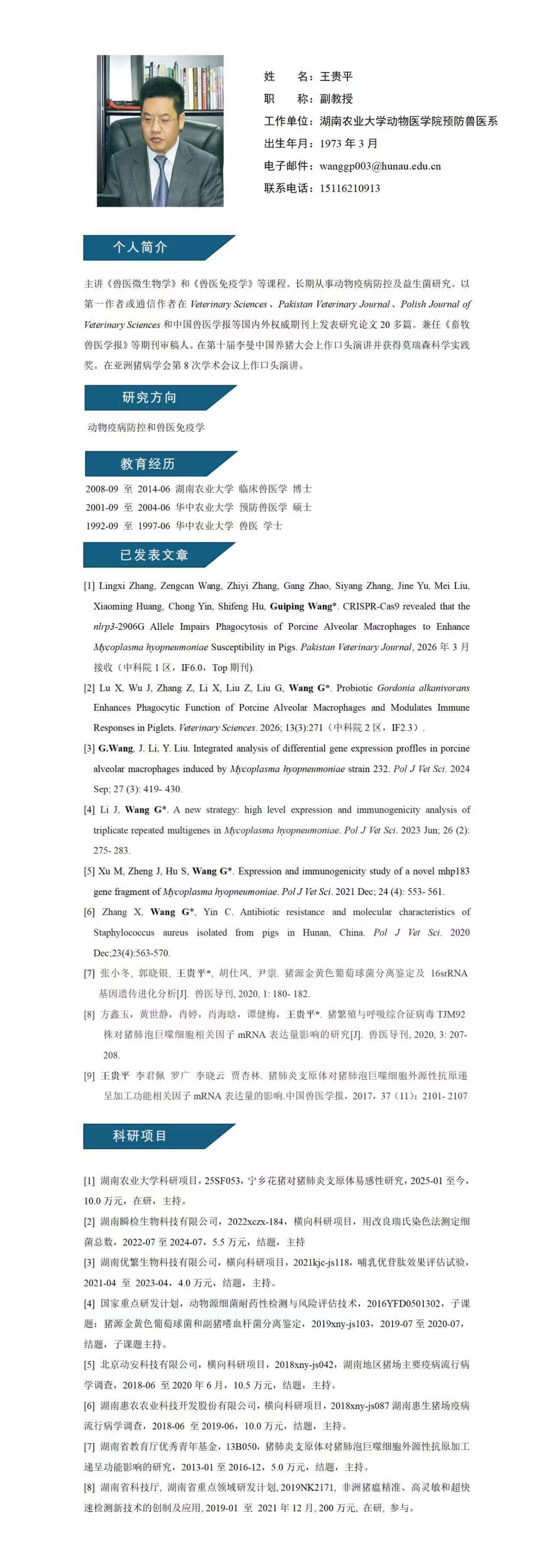 王贵平副教授简介