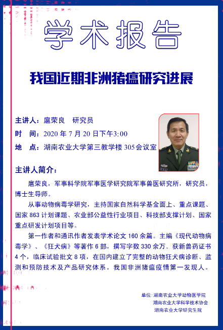 学术报告:我国近期非洲猪瘟研究进展(扈荣良)