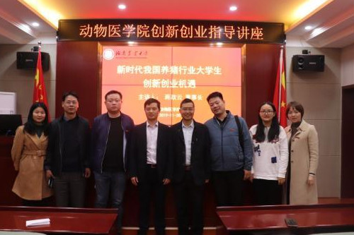 讲座伊始,伍小松书记对蒋政云董事长进行简要介绍,同时表达他对同学们能从本次讲座中得到一些启示的期望。接着,蒋董事长上台宣讲。蒋董事长就新时代我国养猪行业老员工创新创业机遇进行分析,并针对当代养猪行业所面临的问题进行总结。他总结有四点:首先,他认为非洲猪瘟对养猪行业有着很大的冲击。他介绍道,非洲猪瘟是今年在养猪行业遇到的重大灾难,这是因为人们缺乏有效的科学知识,在瘟病泛滥之前没能做出有效的预防疾病传播的措施,使非洲猪瘟的蔓延如此快;其次,他表示在环保的高压下,养猪行业的发展举步维艰。他解释道,企业在追求利益的同时还要注重生态,环保,健康等方面的问题。因此面对环境保护和追求利益的冲突,部分企业感到非常苦恼,他们的发展也由此变得困难;第三、如何提质增效也是当今养猪行业所面临的问题。他说道,当代社会矛盾是人民日益增长的美好生活需要与不平衡不充分的发展之间的矛盾。人们不仅要吃饱,还要吃好,因此如何提高产品质量成为了各企业所要思考的问题;最后,他提到随着智能时代的到来,养猪行业也在智能化。他以绿叶科技为例,讲述随着5G的到来,向系统化,智能化转型成为各个行业所面临的问题,绿叶科技正在向智能化发展走去,以摆脱现代问题的困扰。最后,蒋董事长就长沙绿叶科技的发展历程,企业文化,企业内涵做了详细讲解,并告诉同学们所谓创新就是创造新事物,实现新价值,创业就是创造新组织,实现新价值,创新创业的最终目的是一致的。