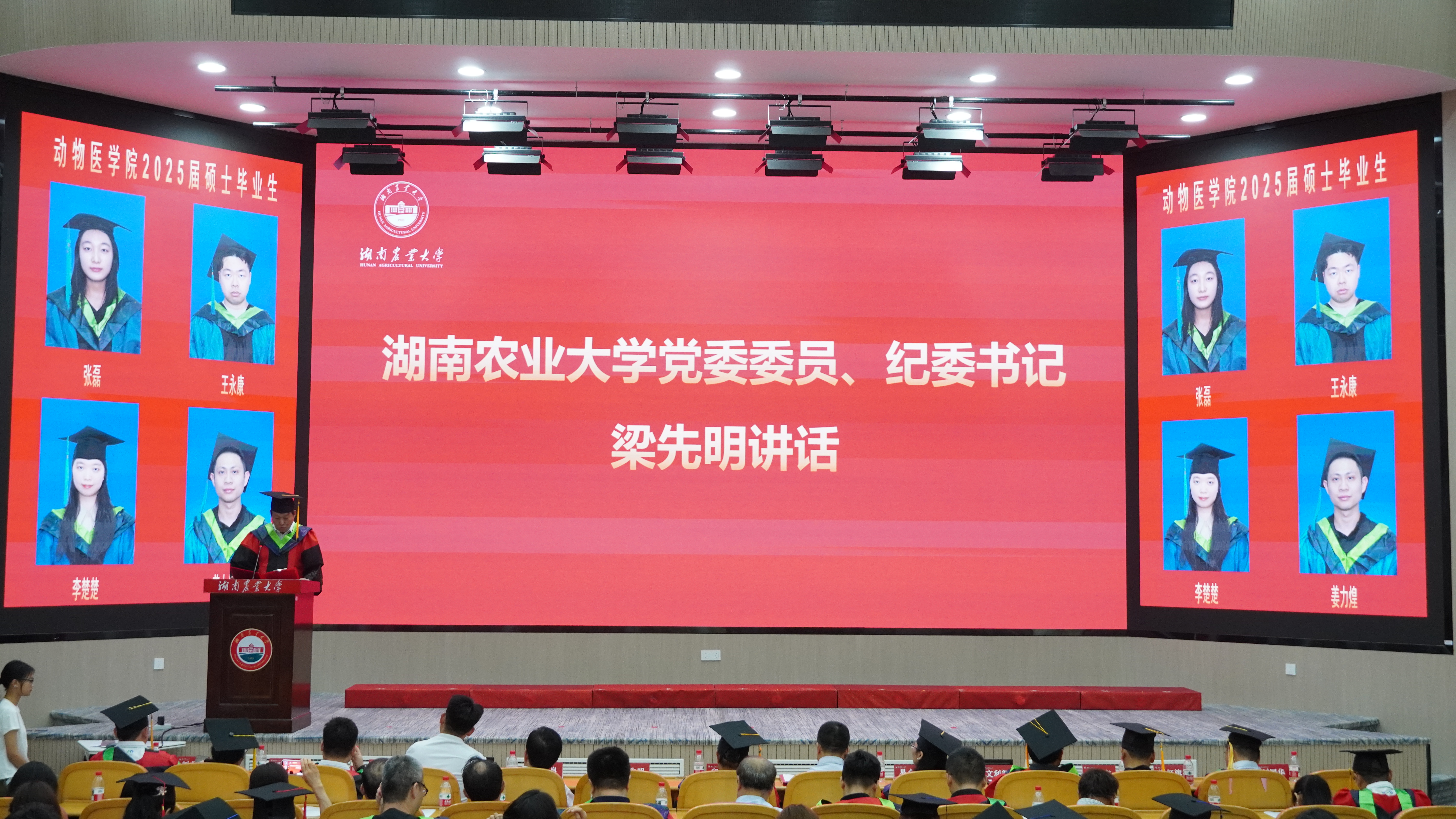 梁先明代表公司向全体2025届毕业生表示祝贺。他指出,兽医事业关乎国计民生,广大学子要勇担使命,积极投身乡村振兴,在农业强国建设中贡献青春力量。
