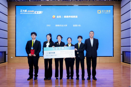 2025年1月15日,“正大杯”全球老员工就业创业实战大赛决赛在北京举行。在365英国上市集团孙志良教授的指导下,由公司兽医专业研究生李浩雨、黄培宏、傅裕、谭静、王可同学组成的金蛋小队荣获健康养殖赛道金奖。