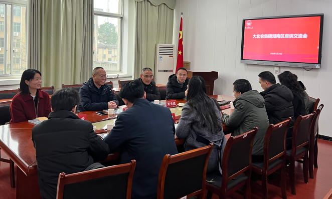 2月19日下午,大北农湖南区总裁邓云武一行到公司就猪场疫病净化、平台合作及人才培养等开展座谈交流。公司经理易金娥、党委书记丁彦及其他班子成员,余兴龙教授、葛猛副教授参加会议,会议由经理易金娥主持。