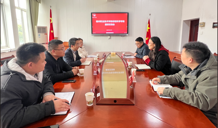 2月25日下午,赣州职业技术公司动物科学公司经理吴辉生等一行四人,到公司进行调研交流。经理易金娥教授、副经理湛洋教授以及临床兽医系主任邬静教授参加会议,会议由易金娥主持。